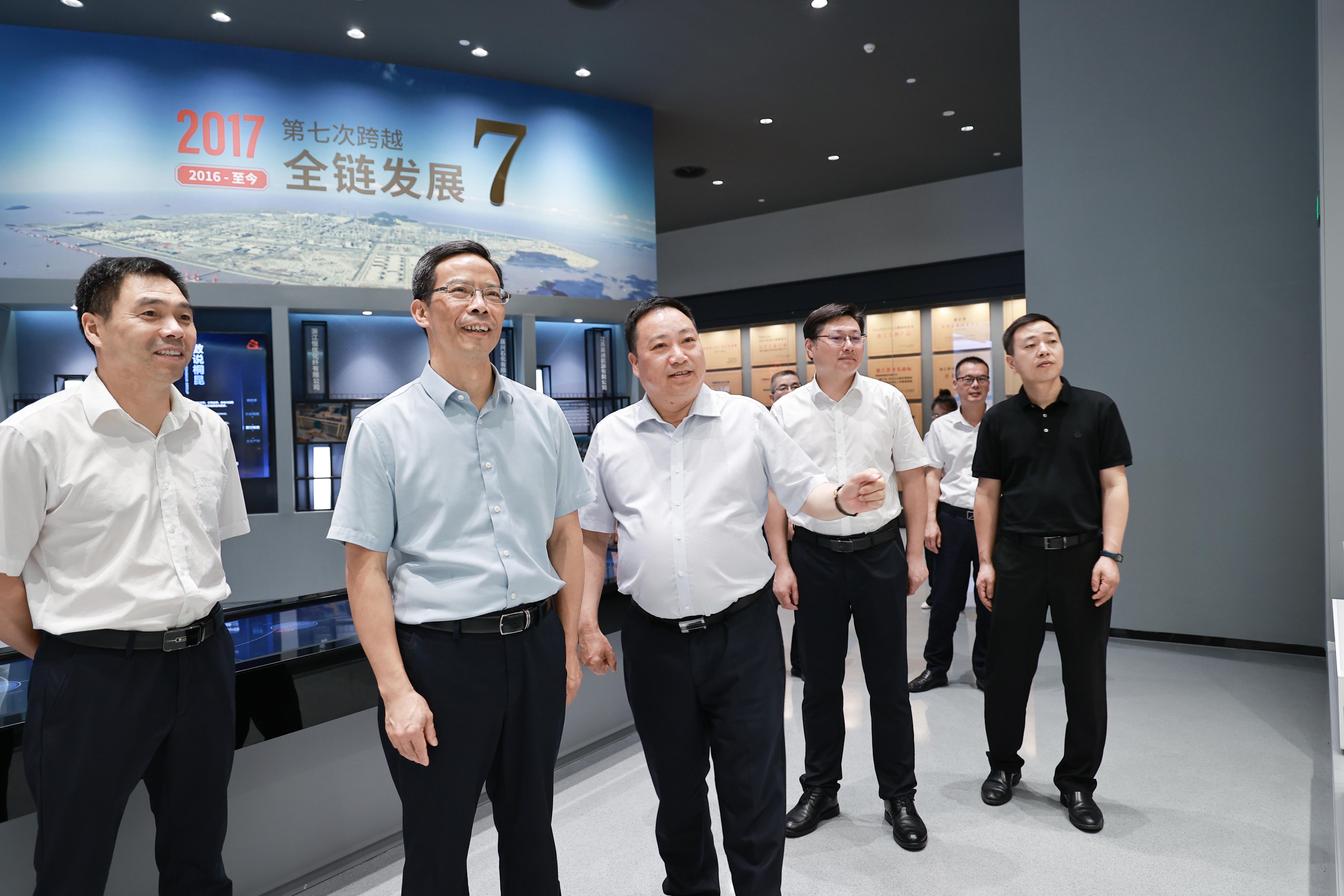 9月6日下午,浙江省總工會(huì)黨組書記、副主席呂志良一行蒞臨桐昆調(diào)研,集團(tuán)黨委書記許金祥、工會(huì)主席宋海榮等熱情接待并陪同一行領(lǐng)導(dǎo)參觀了“印象桐昆”展示廳。